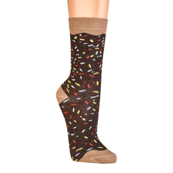 Sweets for my Sweets! Cute socks with donut design. Attractive presentation (individually packed). Soft comfort waistband and toe seam for optimal wearing comfort. Beautiful bright colors. One size fits all standard women’s sizes.