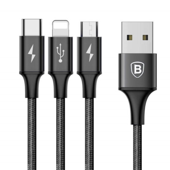 This stunning and super high quality woven 3-in-1 cable from our Rapid Series range features three interfaces; micro, iP (lightning) and Type-C.