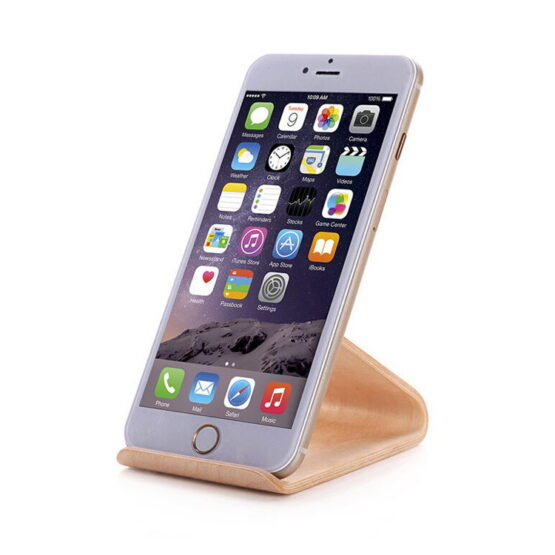 Beautifully designed walnut colored stand designed to hold mobile phones made from wood. It can support a mobile phone in portrait or landscape position. It is ideal for making conference calls or watching movies on a smartphone.